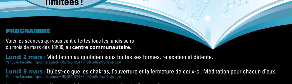 Méditation, chakra, rôle de l’inconscient, canalisation, concert avec bols tibétains, donner un sens à sa vie, apprendre des techniques simples et efficaces, etc. Ce sont des mots qui sonnent bien à vos oreilles? Si oui, je vous invite à poser un regard sur les conférences que la bibliothèque de Saint-Thomas a organisées dans le cadre du Défi 5/30. Venez vous joindre à nous dans cette quête d’ÉQUILIBRE.